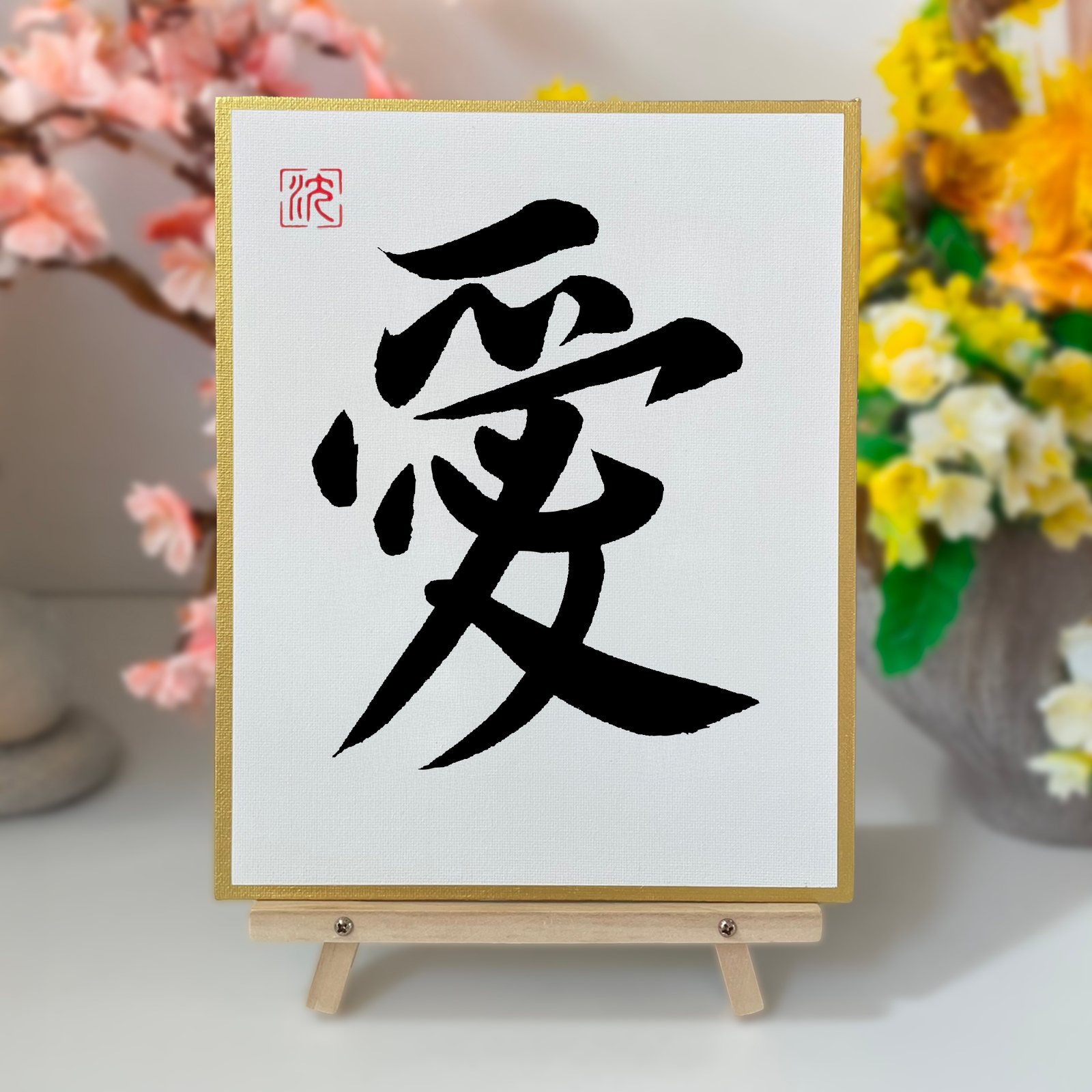 Bring the elegance of East Asian calligraphy into your home with this hand-painted original artwork of the character “愛” (Love).